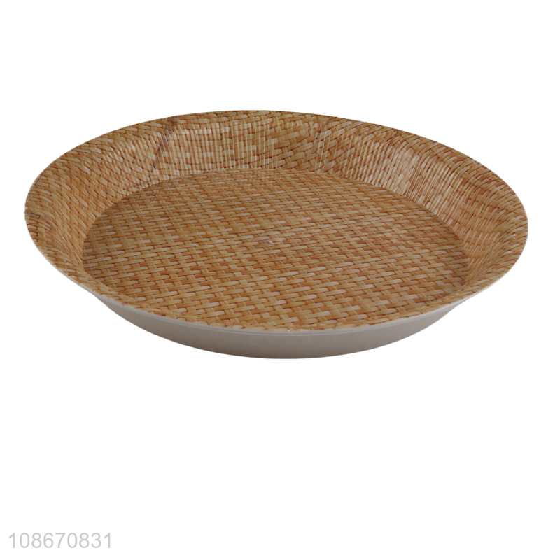 Wholesale round bamboo weaving plastic food cake serving tray