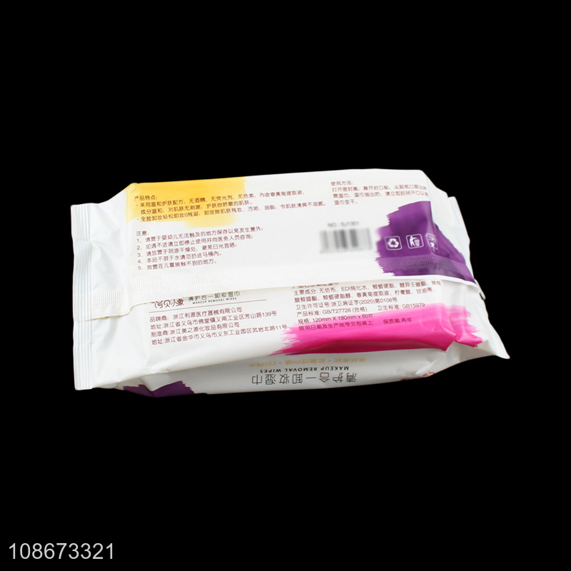 Wholesale 60 sheets alcohol-free disposable makeup remover wipes with cover