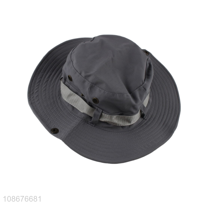 Wholesale outdoor wide brimmed fisherman bucket hat with strings for adults