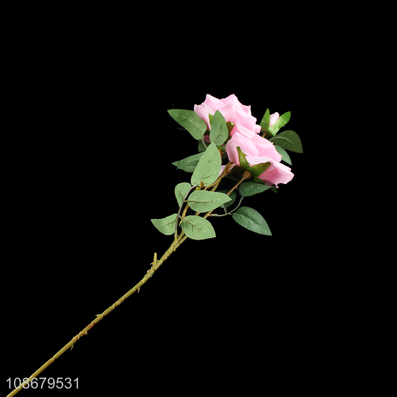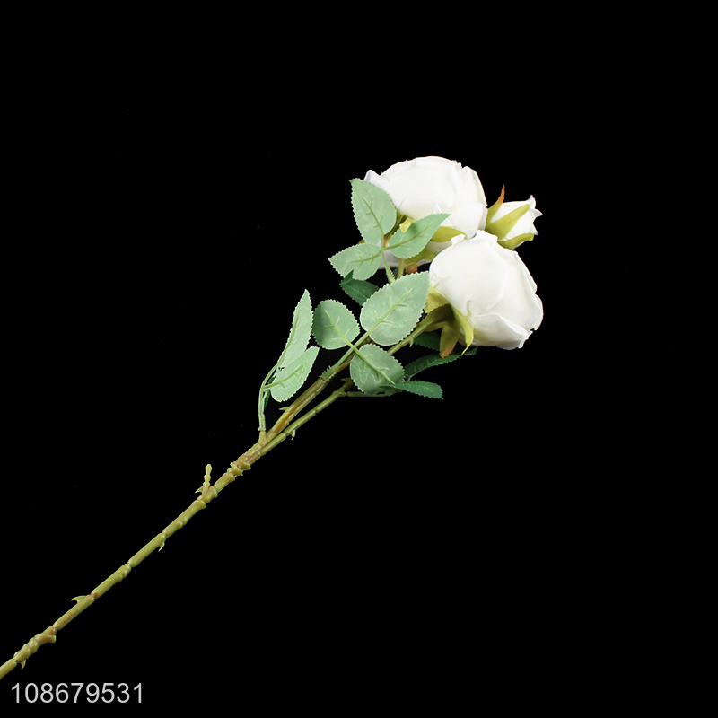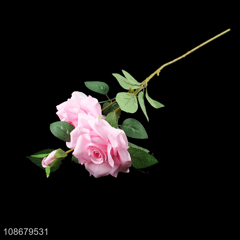 Hot selling 3 heads artificial rose flowers for home office decoration