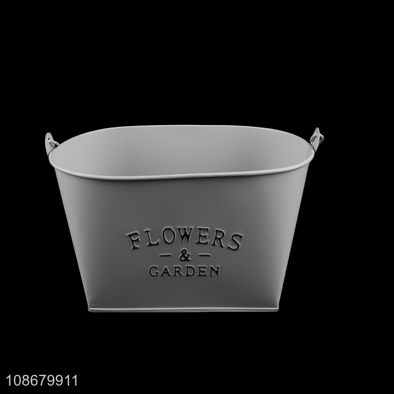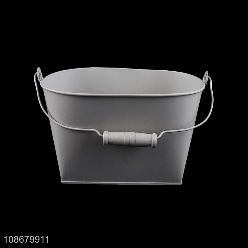 High quality rustic metal iron flower bucket garden planter with handle