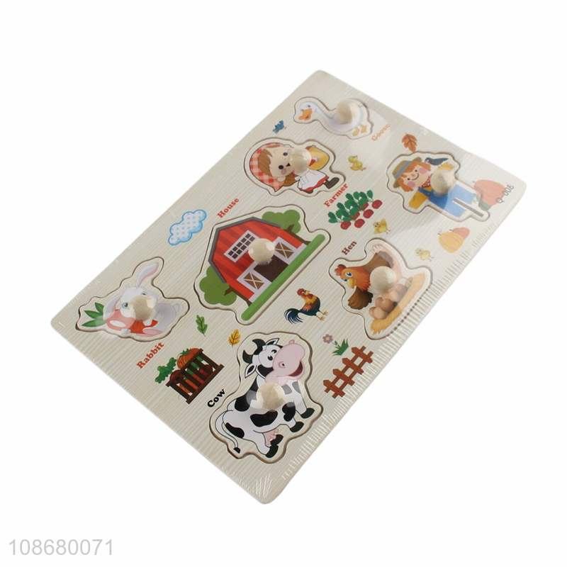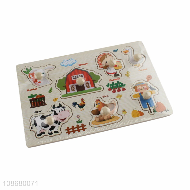 Wholesale kids educational toy wooden farm animal peg puzzle toy