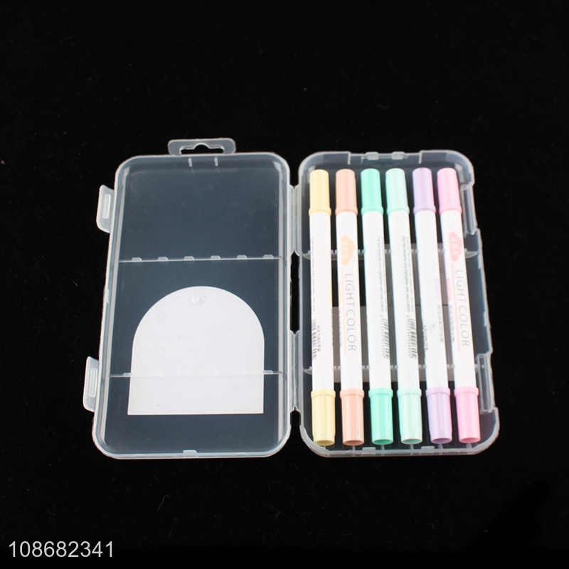 Top quality 6pcs double-headed highlighter pen for painting