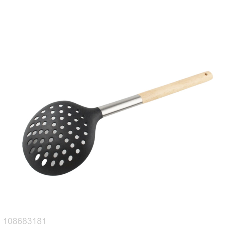 Good price non-stick nylon slotted spoon cooking skimmer with wooden handle