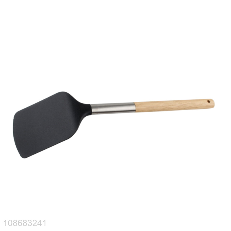 Wholesale non-stick heat resistant nylon kitchen spatula with wooden handle