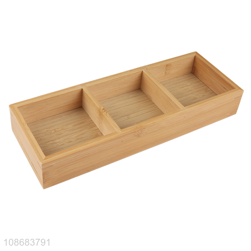 Wholesale 3-compartment natural bamboo serving tray for roast meat shop