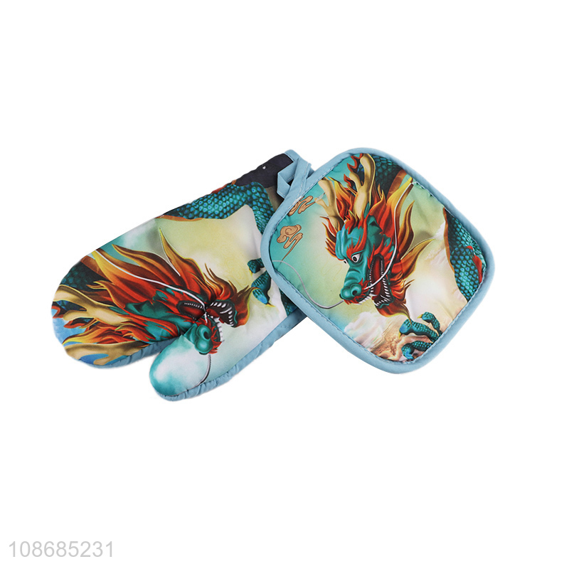 Wholesale heat resistant microwave oven mitt and pot holder set for cooking