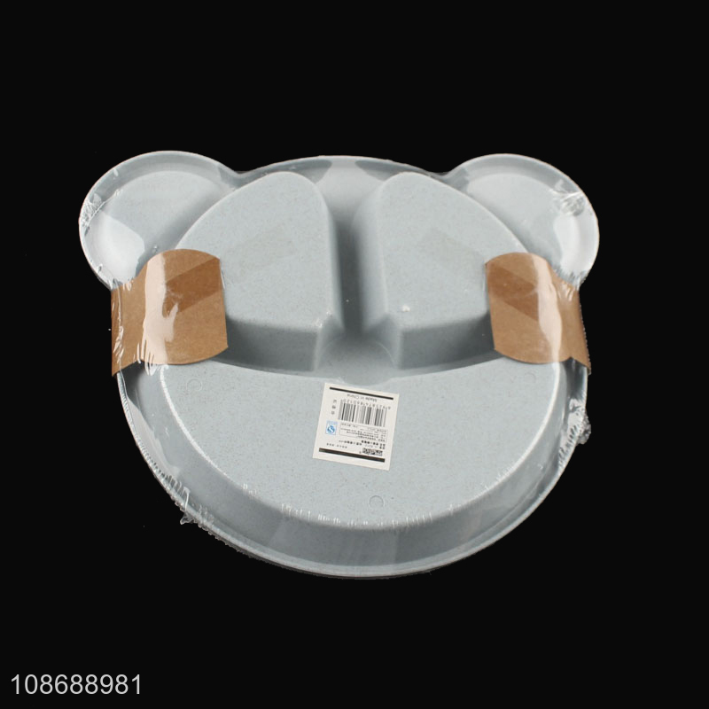 Wholesale cartoon bear shaped wheat straw feeding plate set for babies