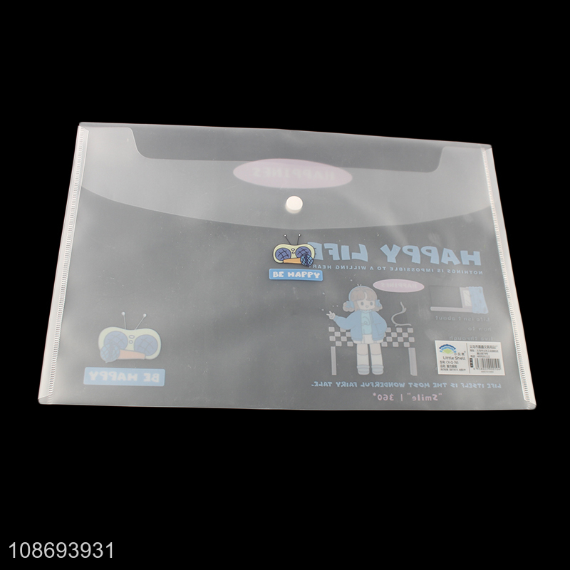 Good quality clear plastic envelope document file bag with snap button