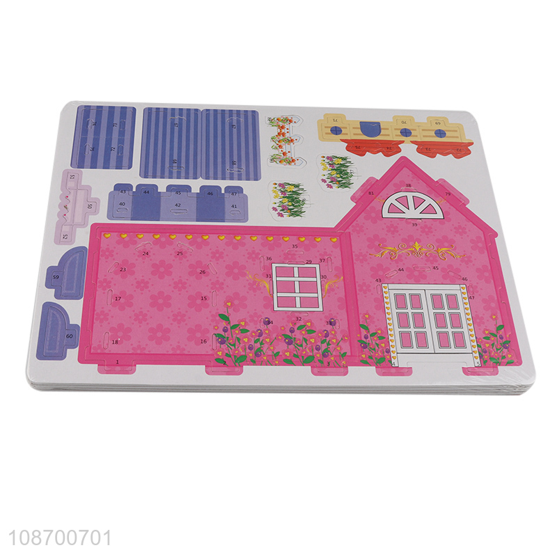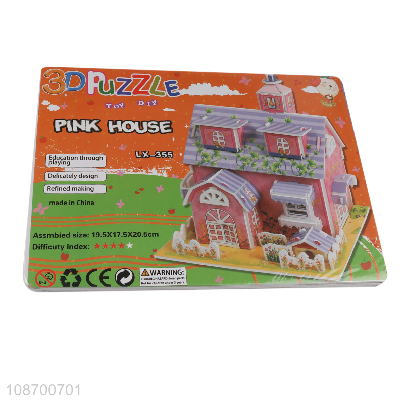Wholesale DIY model building toy 3D pink house jigsaw puzzle toys