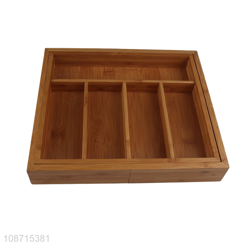 High quality expandable bamboo storage box cutlery organizer for kitchen