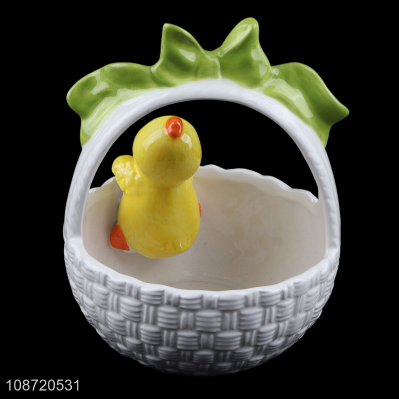 China factory ceramic crafts duck flower basket ornaments for tabletop decoration