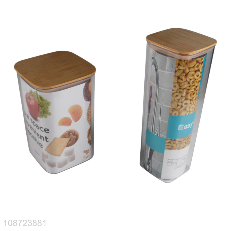 Good quality clear multi-purpose plastic airtight storage jar with bamboo lid