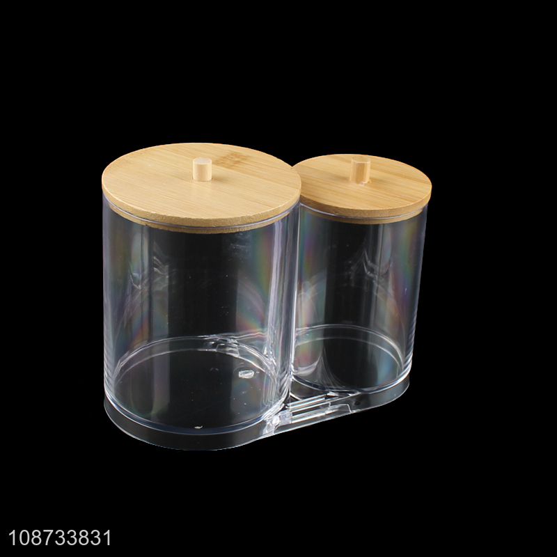 New arrival plastic makeup cotton pad storage box with bamboo lid