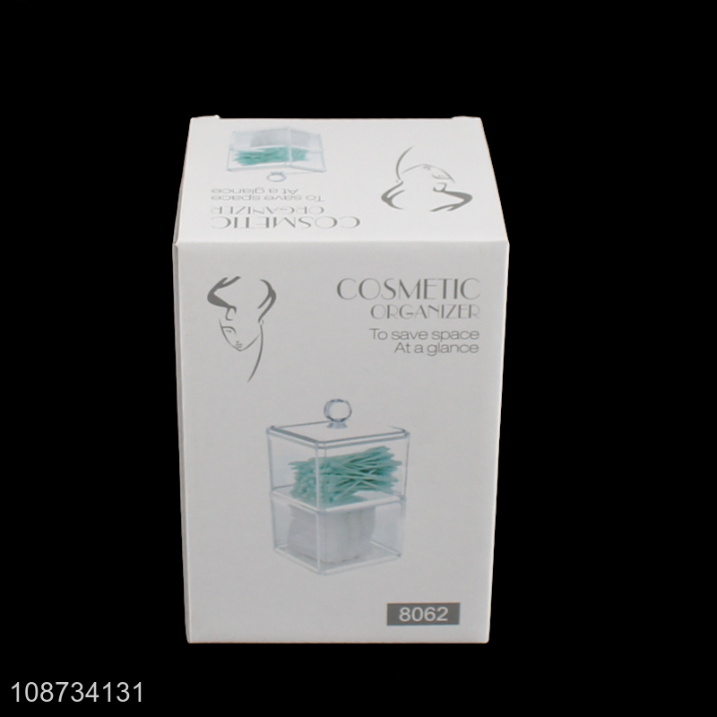 Popular product double-layer clear cotton swab storage box makeup organizer