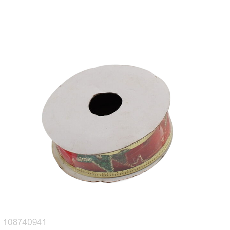 Hot selling wired edge holiday ribbon Christmas glitter ribbon
