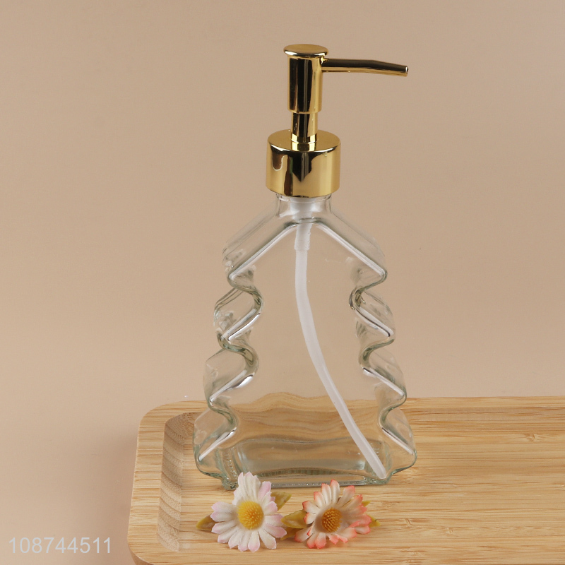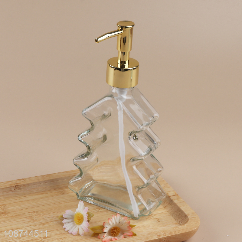 New arrival xmas tree shaped clear glass liquid soap dispenser bottle