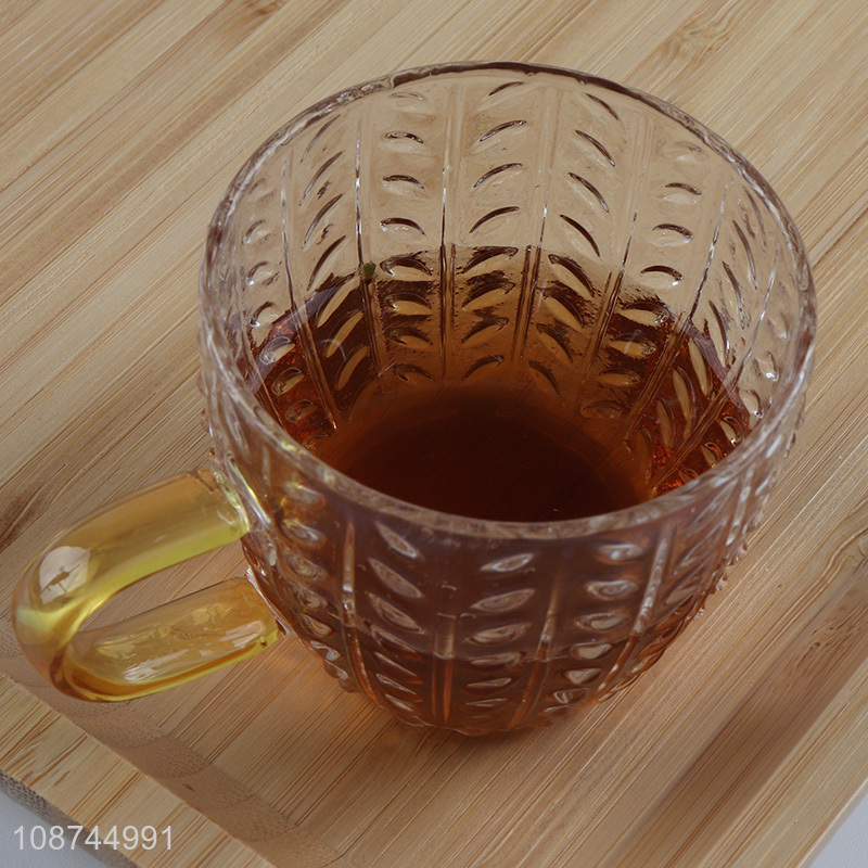 High quality transparent textured glass milk mug tea cup with handle