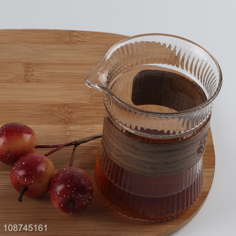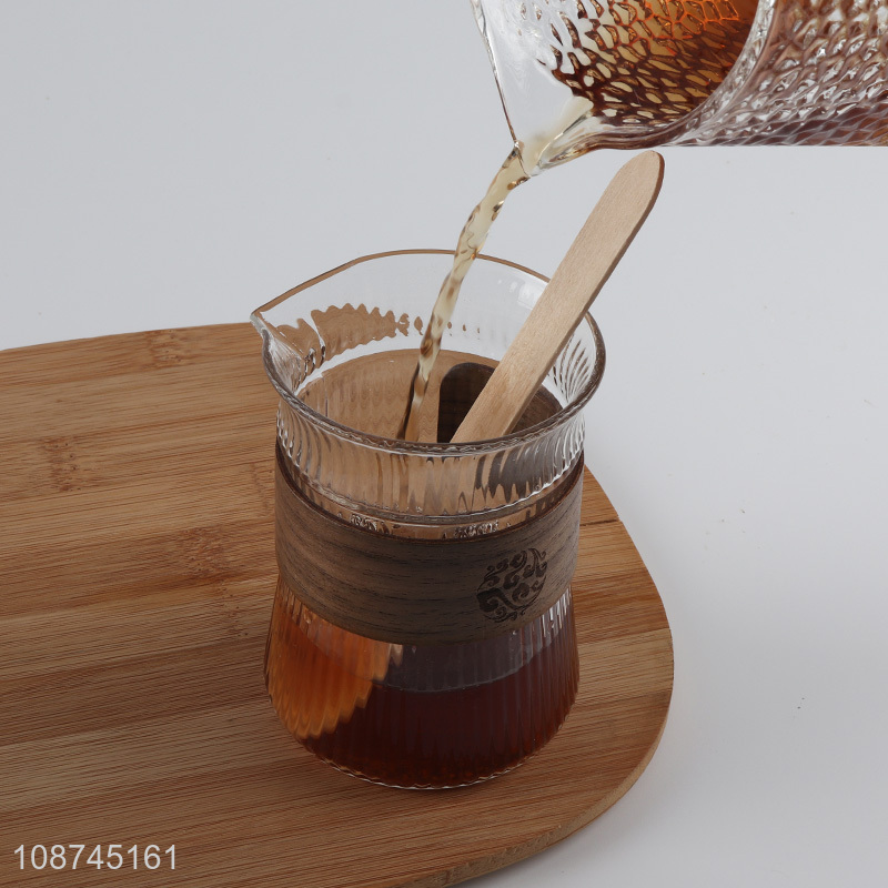 Online wholesale heat-resistant glass coffee cup with wooden cup sleeve
