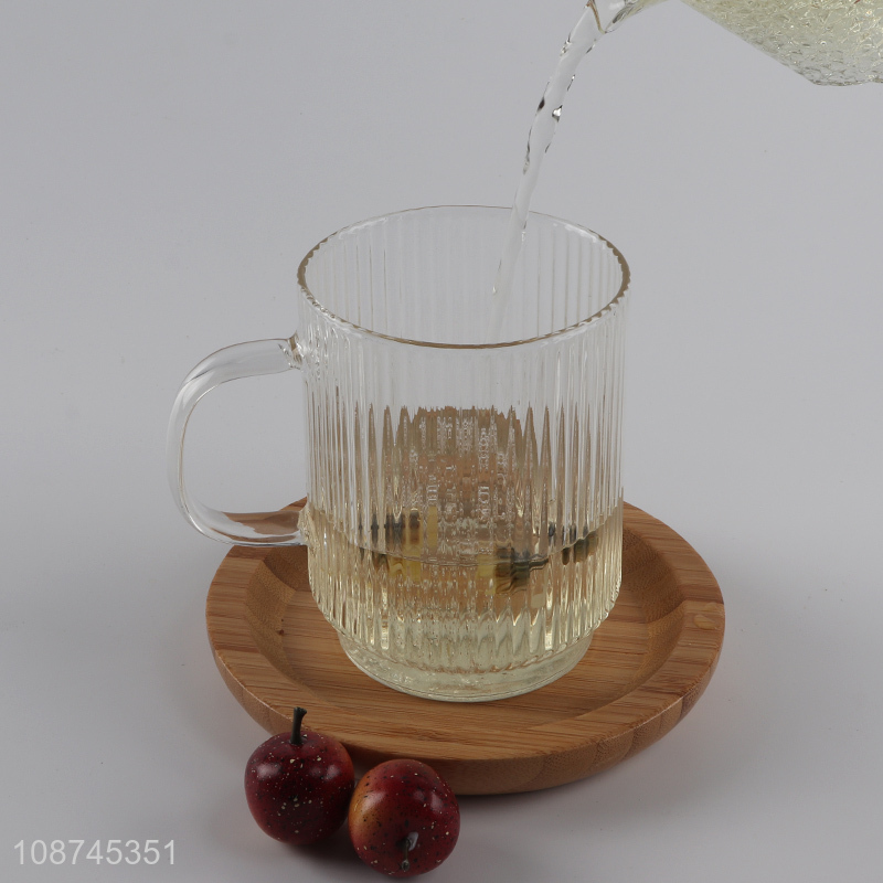 Hot selling ribbed glass tea cup glass water cup for iced coffee