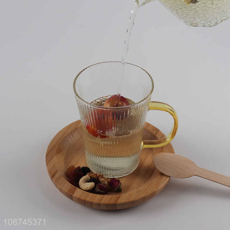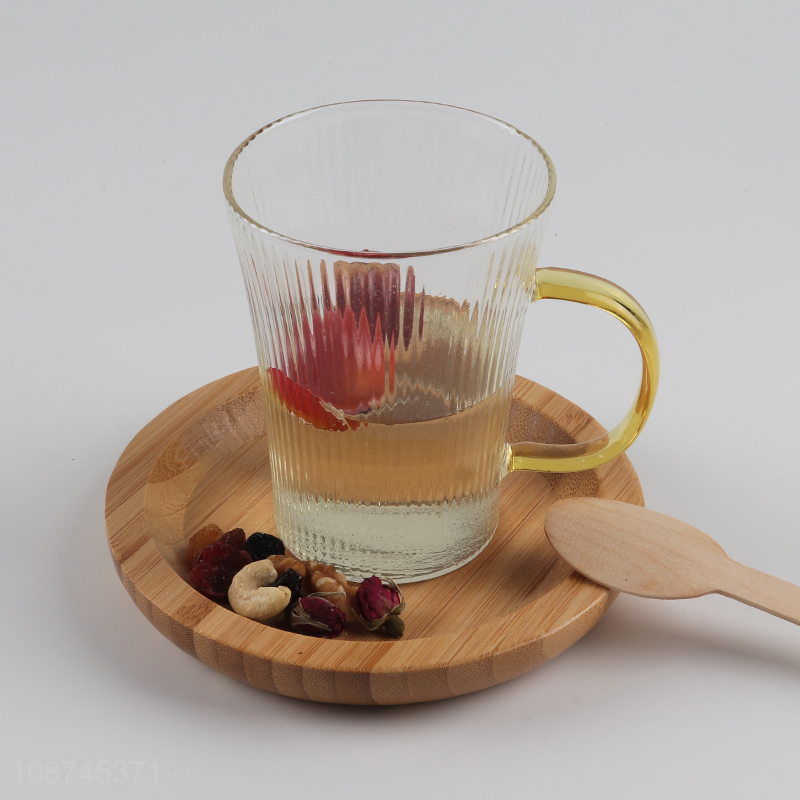 Online wholesale glass mug vertical striped glass tea cup with handle