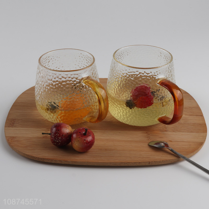 Hot selling engraved glass tea cup glass coffee mug with colored handle