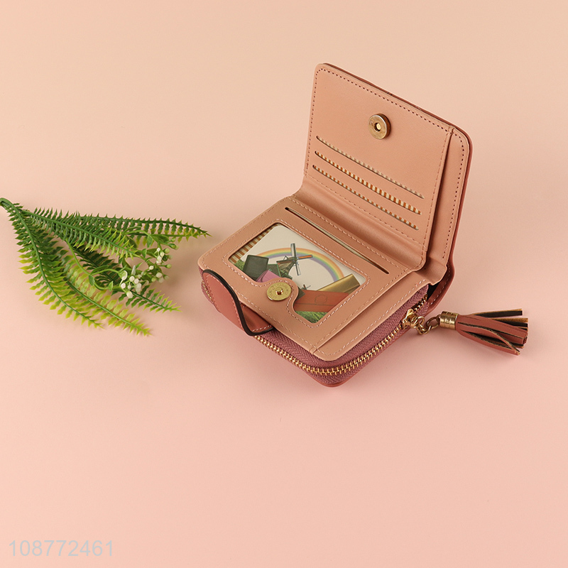 Good quality pu leather wallet card holder with tassel