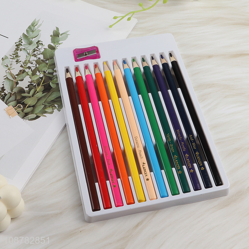 Good quality 12pcs pre-sharpened colored pencils with sharpener