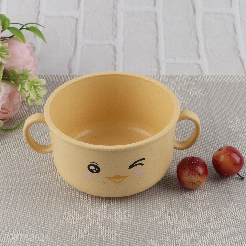 Wholesale wheat straw bowl with double handles for kids