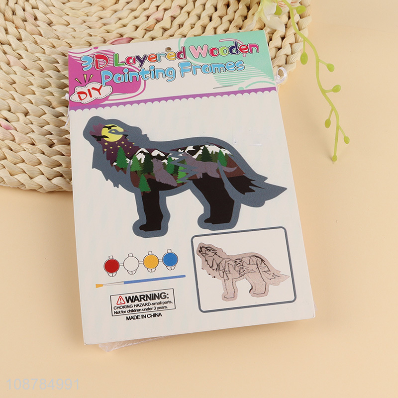 China Imports DIY 3D Layered Wooden Wolf Painting Kit For Kids