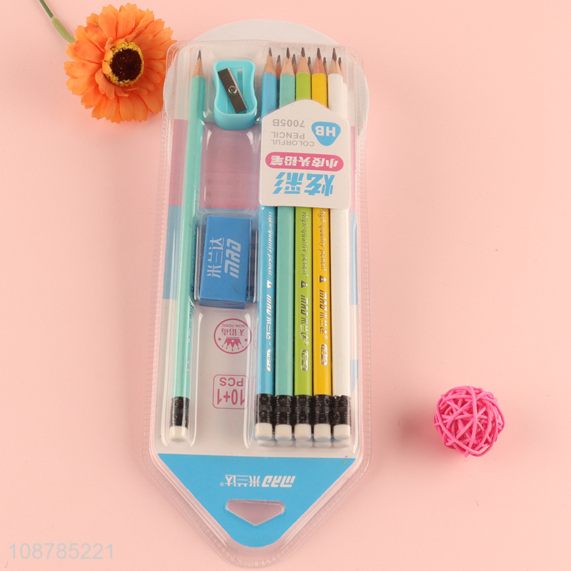 Factory supply HB pencils set with eraser and pencil sharpener