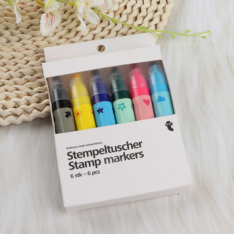 New arrival 6pcs stamp watercolor pens markers for kids