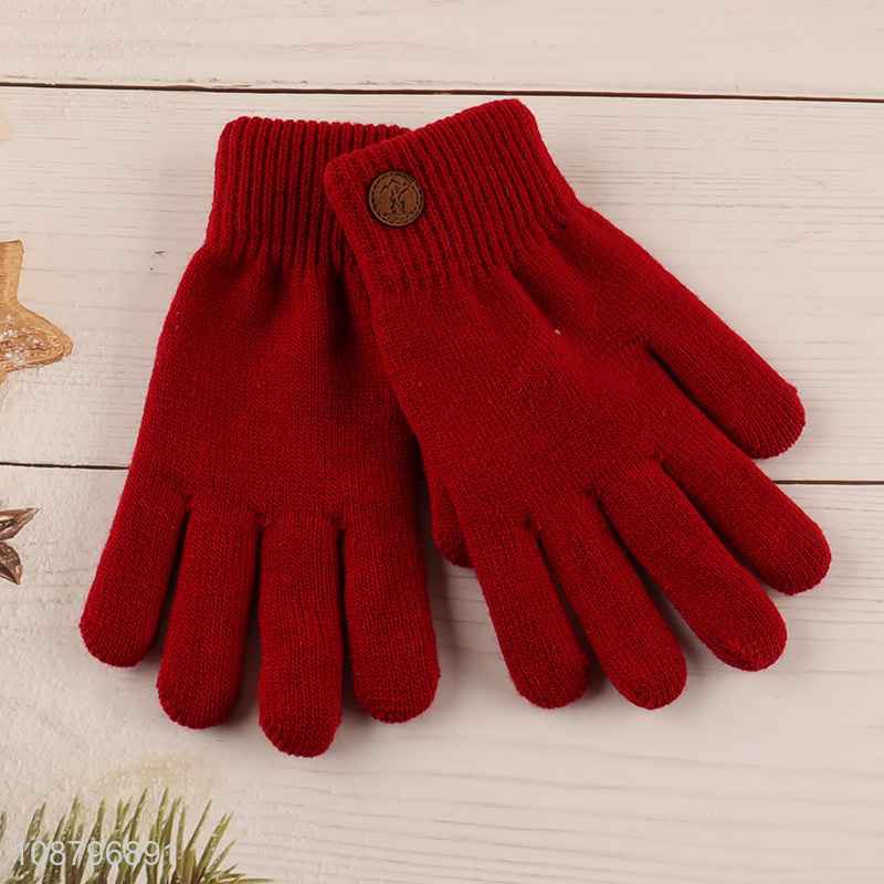 Factory price full finger winter knit gloves for adults