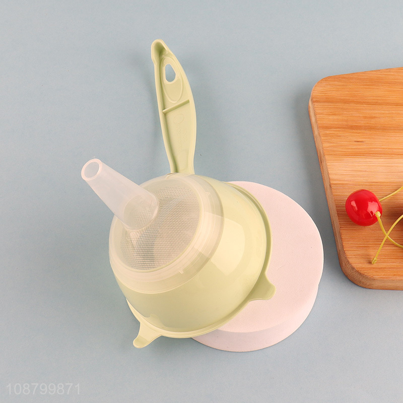 New product plastic handle mesh strainer with funnel