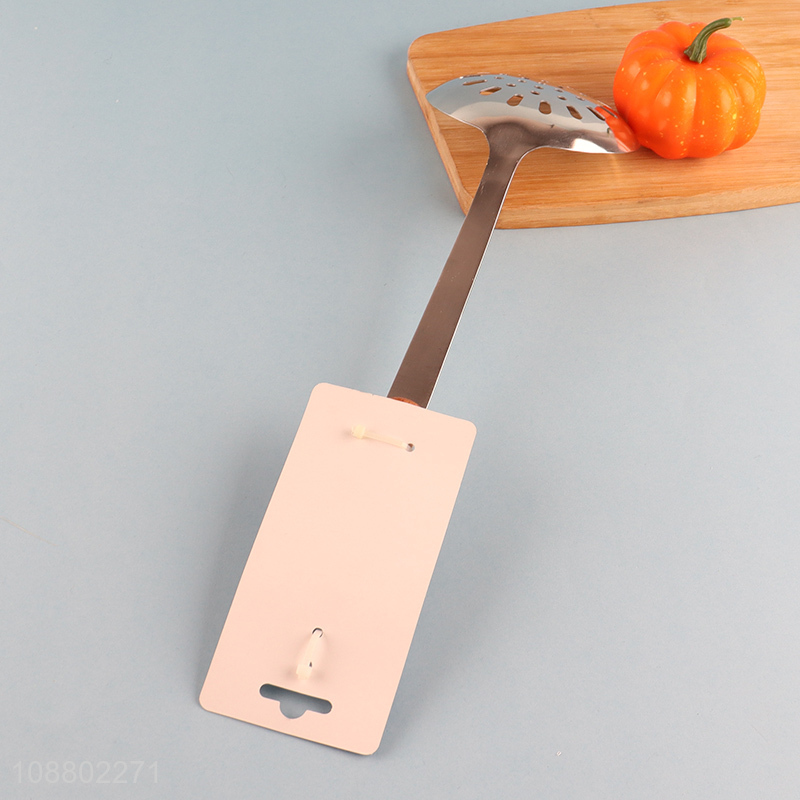 High quality wood handle stainless steel slotted ladle
