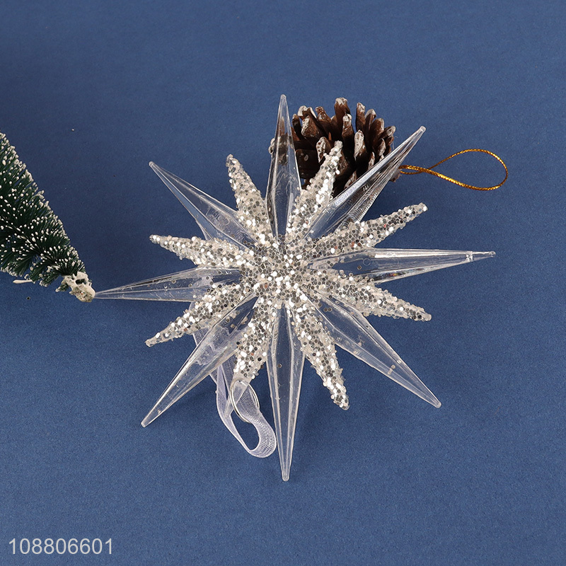 Hot selling clear acrylic hanging star pendants Christmas tree decor