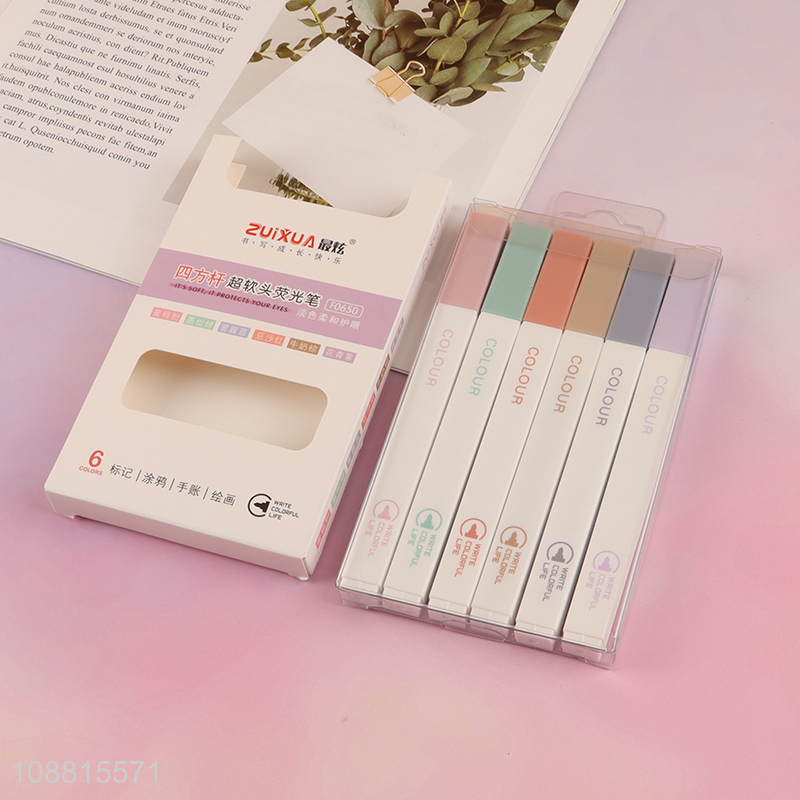 Hot selling 6 colors soft tip pastel highlighters for students