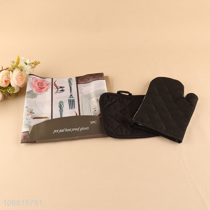 High quality 3pcs apron oven mitt pot holder set for cooking