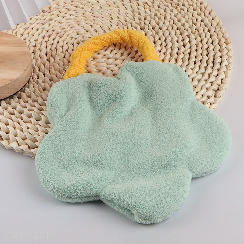 Low price flower shape hanging coral fleece hand towel