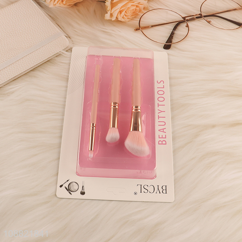 Low price pink 3pcs makeup brush makeup tool with wooden handle