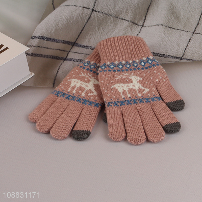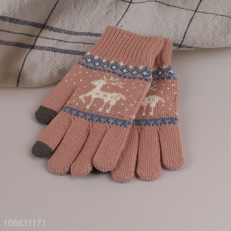 Good quality women winter gloves jacquard knit touchscreen gloves
