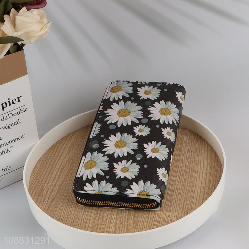 Hot selling daisy flower printed pu leather wallet for women