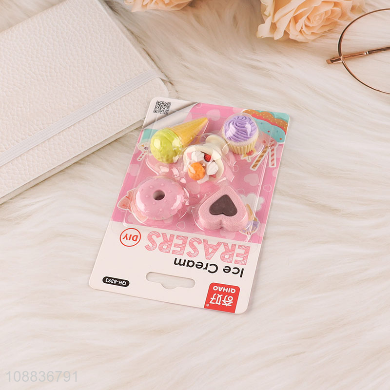 Good price cartoon ice cream shaped students eraser set