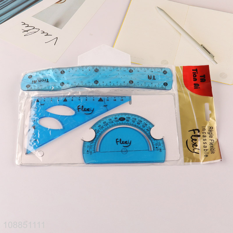 Wholesale 3pcs flexible plastic rulers set school student supplies
