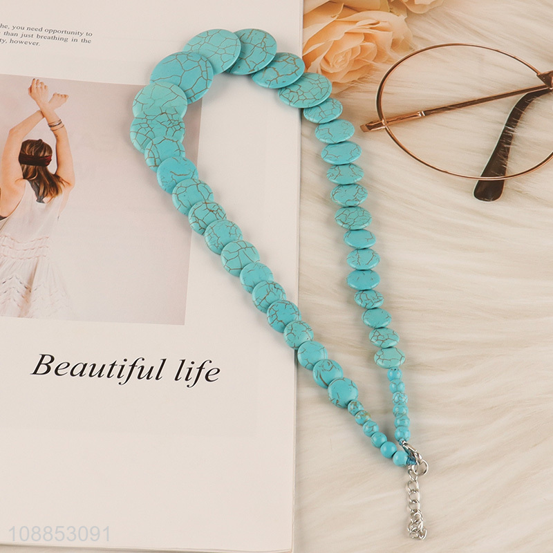 Hot selling beaded simulated turquoise statement necklace for women