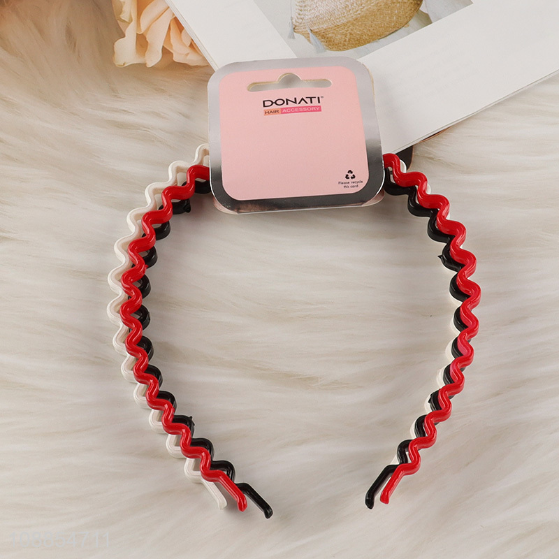 Hot selling 3pcs non-slip wavy plastic headbands hair hoops