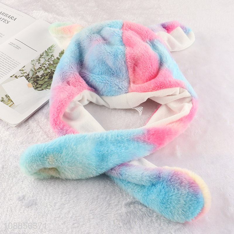 Hot selling cute led glowing plush moving rabbit hat for women girls