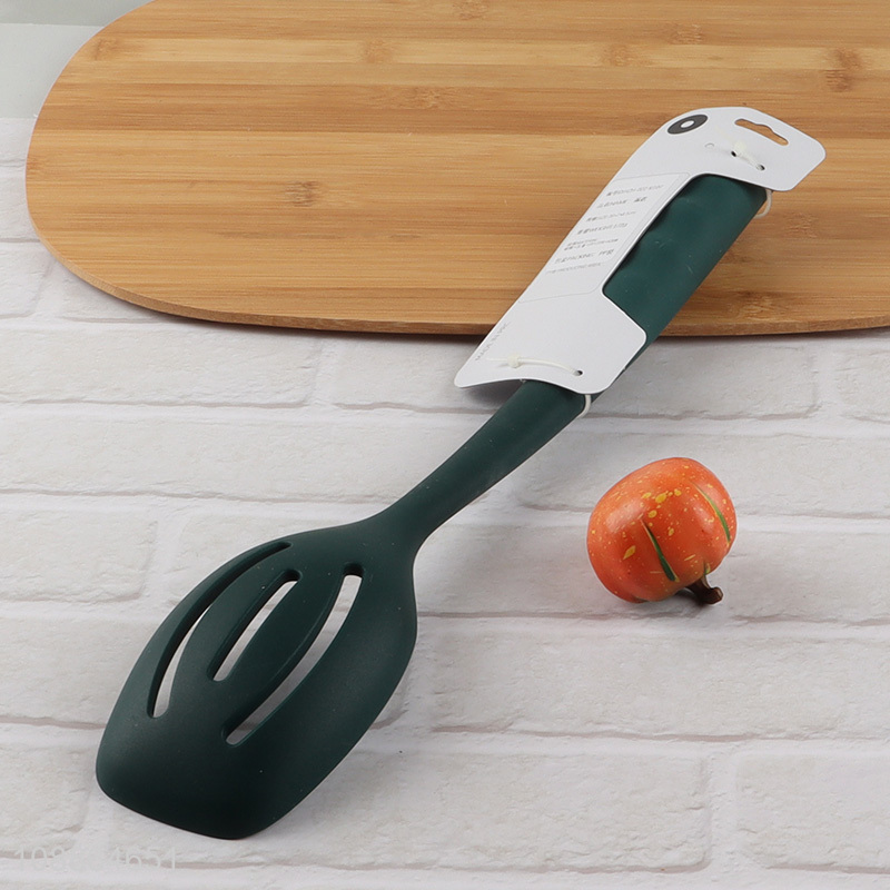 Factory supply heat resistant silicone slotted spoon with plastic handle
