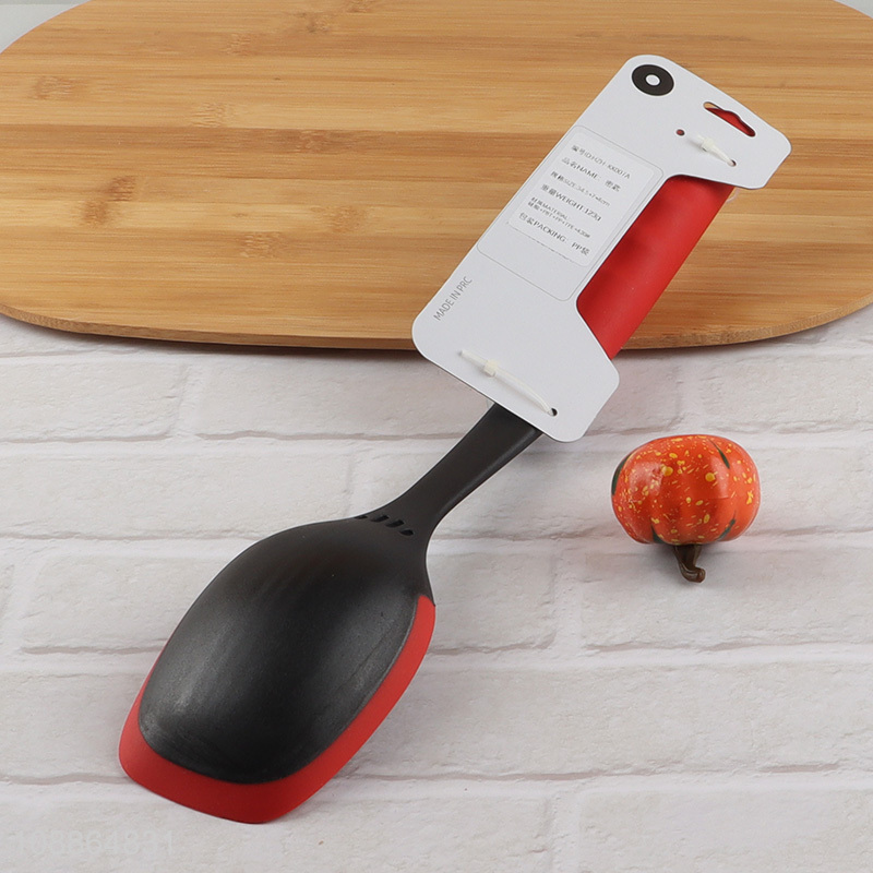 Factory supply kitchen cooking spoon with silicone edge & plastic handle