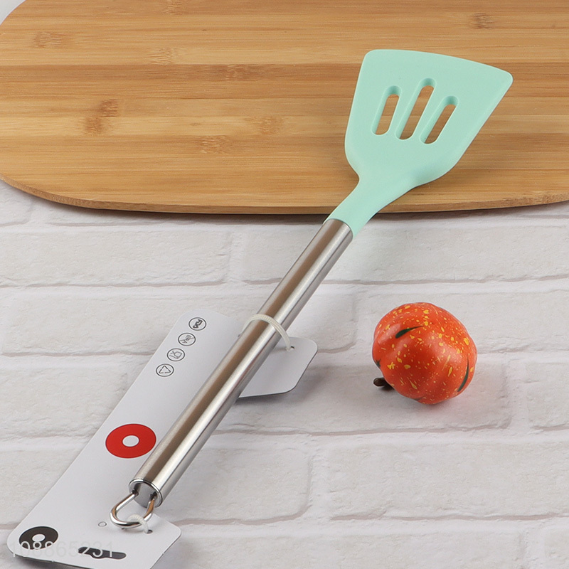 Good price silicone slotted spatula turner with stainless steel handle